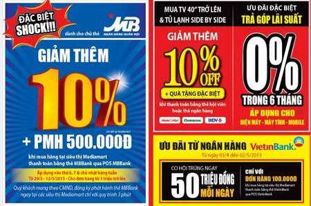 Bên cạnh đó, tiếp nối thành công của 2 đợt đầu, Hệ thống thế giới điện máy Media Mart tiếp tục mang đến đợt 3 “Tháng khuyến mại kích cầu mua sắm” diễn ra từ 12/4 đến 18/4/2013 với hàng loạt ưu đãi gia tăng như giảm giá từ 10-49%, giảm tiếp 10% khi thanh toán qua thẻ ngân hàng cùng quà tặng giá trị. Cụ thể, khi mua hàng tại Media Mart thanh toán qua thẻ MBBank khách hàng sẽ được giảm thêm 10% tặng thêm phiếu mua hàng 500.000 VNĐ vào thứ 6, 7, chủ nhật hàng tuần; hay chỉ với hóa đơn từ 100.000đ, cơ hội trúng 50 triệu đồng mỗi ngày dành cho chủ thẻ Vietinbank; với thẻ Agribank, BIDV hay thẻ hội viên Media Mart, khách hàng lại được giảm thêm 10% cùng quà tặng đặc biệt khi mua TV 40’’ trở lên và tủ lạnh Side by side. Mặc dù, chưa bước vào thời kỳ cao điểm nhưng sức mua các thiết bị làm mát đã bắt đầu tăng đáng kể do dự báo năm nay thời tiết nắng nóng sẽ kéo dài. Nhờ chuẩn bị kỹ càng về nguồn lực nên Media Mart vẫn đảm bảo duy trì cam kết lắp đặt điều hòa trong 2h, miễn phí công lắp đặt cùng quà tặng thêm lên đến 690.000đ. Một số sản phẩm điện lạnh giảm giá sâu như: điều hòa 1 chiều 9000BTU Electrolux ESM09CRD-C1 giá 5.690.000đ tặng bình siêu tốc và công lắp đặt, điều hòa 2 chiều 9000 BTU inverter Daikin FTXD25DVMV giá 9.990.000đ tặng bình siêu tốc và công lắp đặt, tủ lạnh 110l Sanyo SR-125PN giá cực sốc 4.090.000đ tặng bộ ấm trà cao cấp…