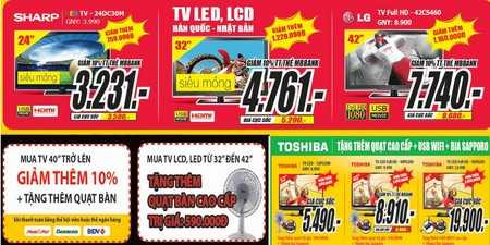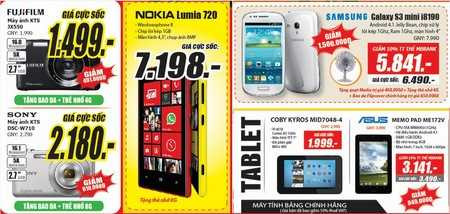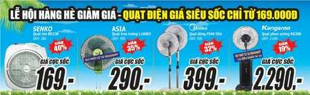 Có giá chỉ từ 169.000đ, mặt hàng quạt điện tại Media Mart được khá nhiều khách hàng quan tâm tìm mua: quạt tản Senko BD230 giá chỉ 169.000đ, quạt treo tường Asia giá 290.000đ, quạt phun sương Kangaroo KG206 có điều khiển từ xa giá 2.290.000đ Các sản phẩm điện tử tiêu dùng công nghệ mới nhất năm 2013 của những thương hiệu nổi tiếng như Sony, Samsung, Sharp… đều được ưu đãi giá và tặng quà hấp dẫn. Chẳng hạn TV LED Sharp 24’’ 24DC30M giá MBbank chỉ 3.231.000đ, TV full HD 42’’ LG 42CS460 giá MBBank chỉ 7.740.000đ, TV LED 32’’ Toshiba 32PU200 giá cực sốc 5.490.000đ tặng quạt 590.000đ và thùng bia Sapporo… Đặc biệt, nhiều smartphone, máy ảnh, máy tính bảng… được tài trợ giá đến 40%. Một số sản phẩm tiêu biểu như: ĐTDĐ Samsung Galaxy S3 mini giá MBBank 5.841.000đ, Nokia Lumia 720 giá cực sốc 7.198.000đ tặng thẻ nhớ 8G, máy ảnh Fujifilm JX550 giá 1.499.000đ tặng bao da, thẻ nhớ 4G; máy tính bảng Coby Kyros MID7048-4 giảm 1 triệu còn 1.999.000đ…. Đây cũng là cơ hội vàng để sở hữu laptop cấu hình khủng giá rẻ: Lenovo Sleekbook S400 Pentium B997 giá chỉ 6.990.000đ, thanh toán qua thẻ MBBank giảm 10% còn 6.291.000đ, Vivobook Asus X202E core i3 giá MBBank chỉ 10.990.000đ… Không chỉ giảm tối đa các chi phí không cần thiết, cắt giảm lợi nhuận để giảm giá thành, Media còn cam kết cung cấp sản phẩm chính hãng chất lượng, đổi trả hàng trong 7 ngày, miễn phí vận chuyển 100km, mua hàng trả góp lãi suất 0%, tặng thêm 1 năm bảo hành, hoàn tiền lắp đặt vận chuyển cho khách hàng lên đến 5%, bảo hành-bảo trì tại nhà... Xem chi tiết tại website www.mediamart.vn hoặc liên hệ tổng đài chăm sóc khách hàng 1900 54 55 66 và tổng đài bán hàng qua điện thoại 04 6262 8888.