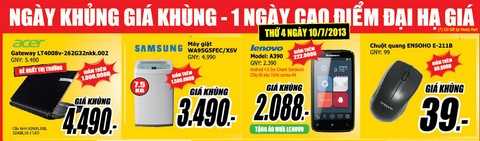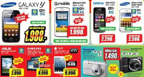 Sản phẩm công nghệ cao không chỉ phục vụ cho nhu cầu giải trí mà còn trở thành công cụ góp phần quan trọng trong học tập, công việc. Một số model smartphone, máy tính bảng, máy ảnh giá rẻ đang được ưa chuộng như: Samsung Galaxy Y S5360 giá ưu đãi 1.989.000đ, Qsmart S16 giá 1.998.000đ, bộ đôi máy ảnh Panasonic Lumix FH4GA và Canon Powershot A810 đồng giá 1.490.000đ, Samsung Galaxy Tab 2 10.1 giá chỉ 8.998.000đ tặng thêm bộ quà “khủng” trị giá 2.490.000đ… “Ngày khủng giá khùng” vẫn luôn là chương trình định kỳ được đón đợi vào thứ 4 hàng tuần của những tín đồ săn hàng giá rẻ. Sở hữu ngay điều hòa 1 chiều 9000BTU Media MSM09CR giá sốc 4.790.000đ, máy giặt Samsung 7.5kg WA95G5FEC giảm 1,5 triệu còn 3.490.000đ, laptop Acer Gateway LT4008v chỉ 4.490.000đ, Smarphone Lenovo A390 giảm 222.000đ còn 2.088.000đ, chuột quang Ensoho giá 39.000đ… Dành ngân sách lên tới hàng tỷ đồng cho chiến dịch xả hàng đợt này, Media Mart không chỉ cam kết đem đến sản phẩm chính hãng với mức giá thành rẻ nhất mà còn nỗ lực không ngừng để hoàn thiện các dịch vụ gia tăng mang lại cho khách hàng. Xem chi tiết tại website www.mediamart.vn hoặc liên hệ tổng đài chăm sóc khách hàng 1900 54 55 66 và tổng đài bán hàng qua điện thoại 04 6262 8888.