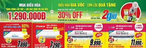 Đặc biệt tại tất cả các trung tâm thuộc hệ thống thế giới điệnmáy MediaMart, nhiều chính sách bán hàng ưu đãi tập trung cho các sản phẩm điện lạnh phục vụ cho nhu cầu mua sắm mùa hè. Như điều hòa 1 chiều 9000BTU Daikin FTNE25MV1V giảm 1,2 triệu còn 7.290.000đ tặng quà tặng cao cấp trị giá 990.000đ, điều hòa invter tiết kiệm điện đến 60% Sharp AH-X9 giảm 1,8 triệu còn 7.890.000đ,…