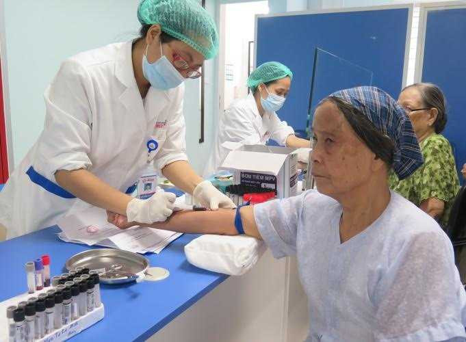 Cán bộ lấy mẫu xét nghiệm cho người có công tại MEDLATEC.