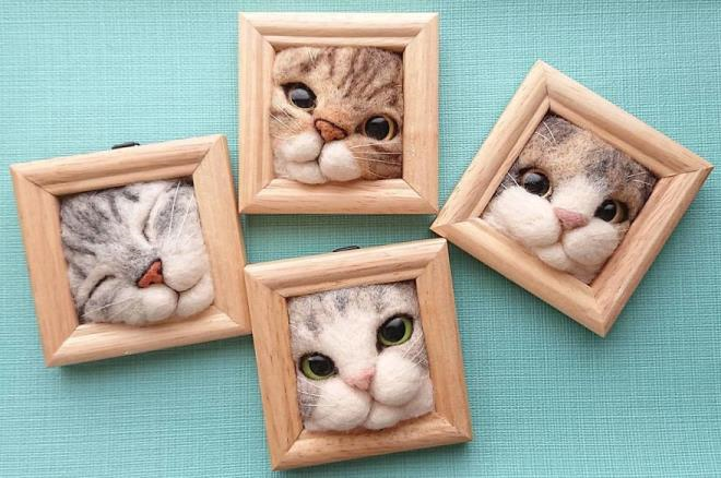 Đam mê loài mèo và muốn lưu giữ hình ảnh đáng yêu của chúng, nghệ sĩ Nhật Bản Fujita Satomi tạo ra những khung hình mèo bằng len khác lạ, khiến nhiều người thích thú.
