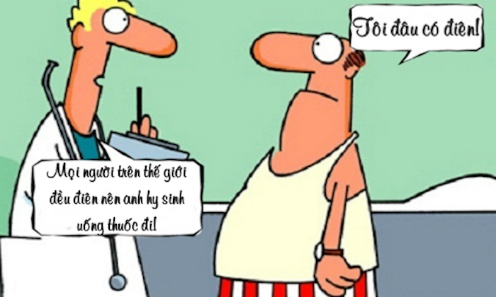 - Nhưng tôi không hề có vấn đề gì cả thưa bác sĩ. Những người còn lại của thế giới mới bị điên, họ mới cần phải uống thuốc.