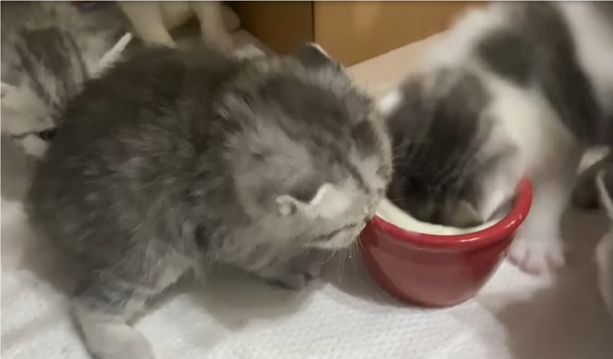Nhiều mgười xem không nhịn được cười khi nhìn thấy hành động cực dễ thương của chú mèo sau khi ngã vào bát sữa.