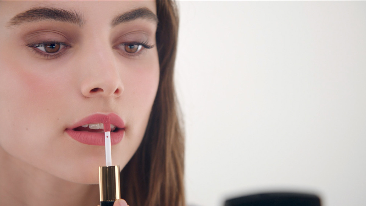 - Thoa một lớp son mỏng lên môi, sau đó dùng khăn giấy thấm nhẹ.