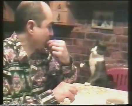Mèo hướng dẫn chủ... bón cho mình ăn