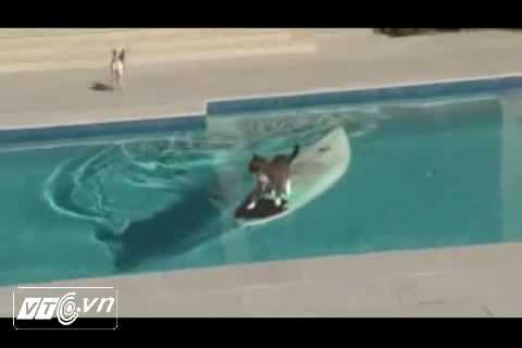 11/08/2012 06:38:00 +07:00(VTC News) - Chú mèo may mắn nhảy lên ván trên bể bơi, thoát khỏi sự truy đuổi của chú chó.