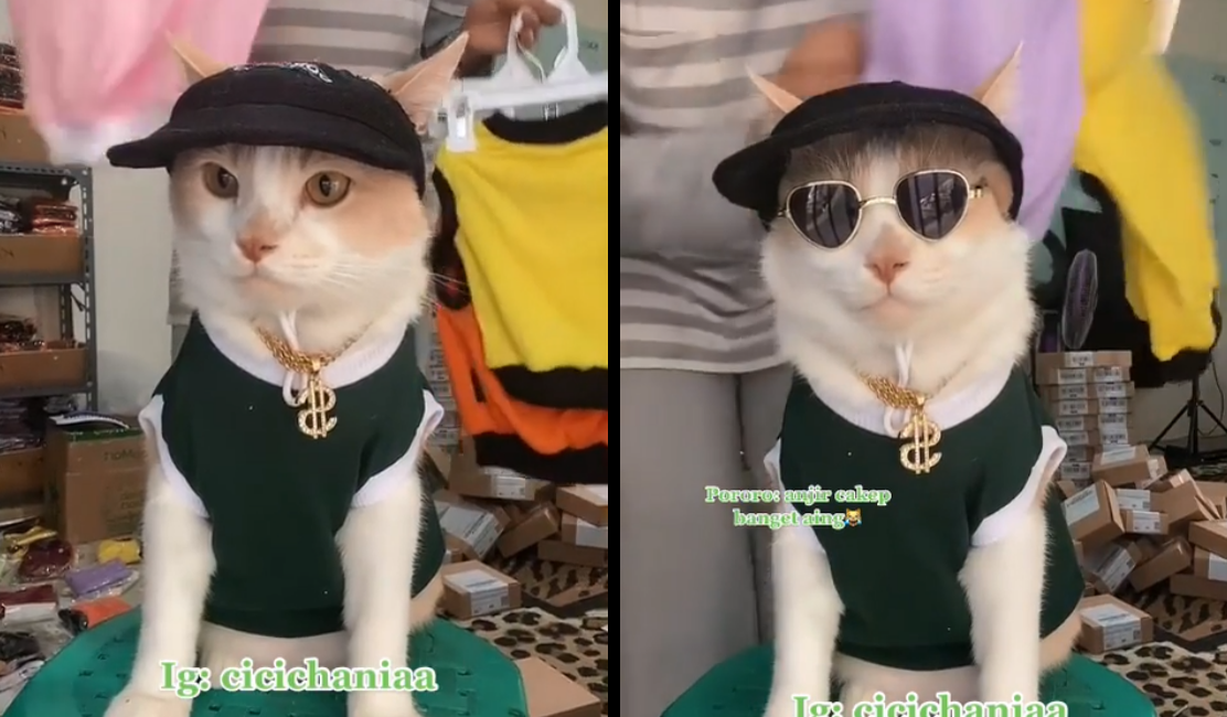 Mèo mặc đẹp, ngồi làm mẫu giúp chủ livestream bán quần áo