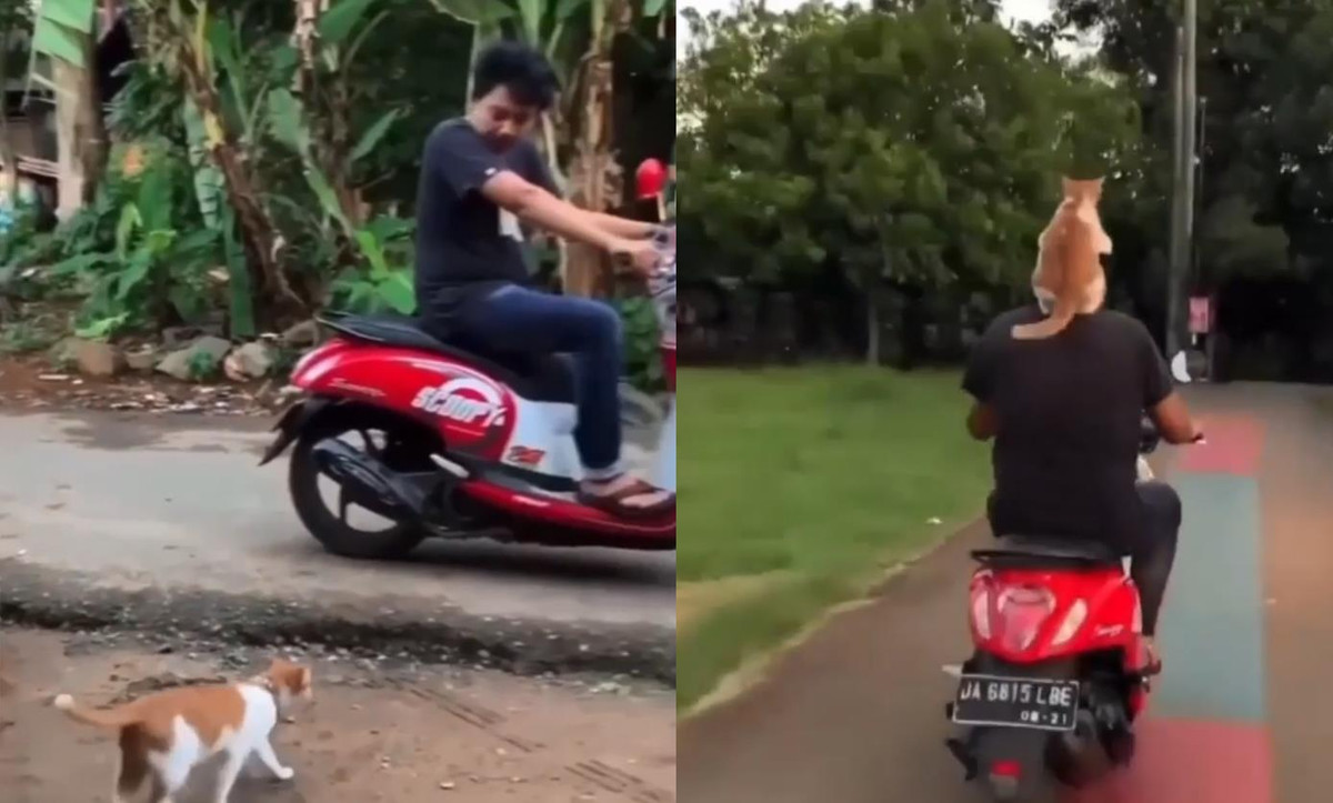 Mèo nghễu nghện 'đi phượt' với chủ bằng xe máy