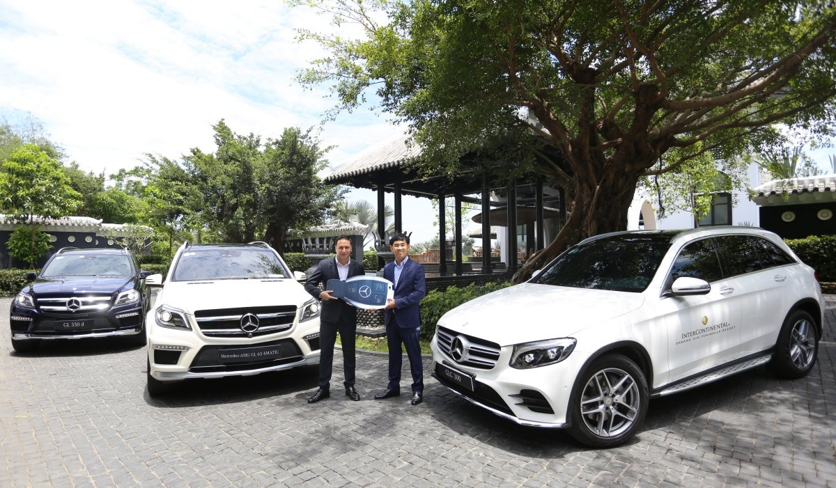Ông Choi Duk Jun, Giám đốc Điều hành khối Kinh doanh Xe du lịch của Mercedes-Benz Việt Nam (phải) trao biểu tượng bàn giao xe cho đại diện của InterContinental Đà Nẵng