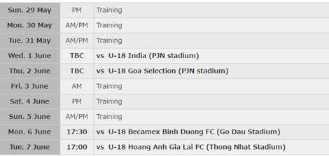 | Lịch tập huấn của U16 Nhật Bản |