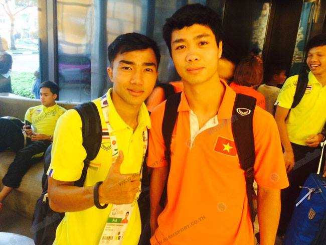 | Chanathip chụp ảnh cùng Công Phượng |