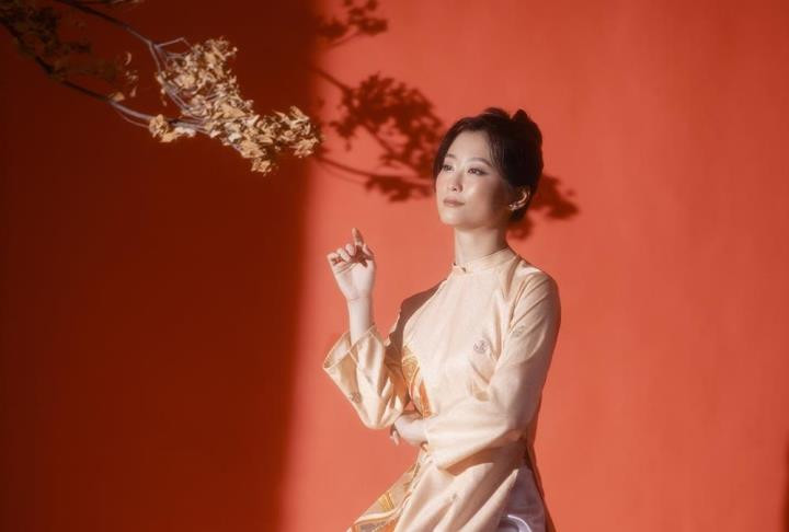 Đây là lần hiếm hoi diễn viên Akari nhận làm mẫu ảnh. Cô bất ngờ xuất hiện ở vai trò nàng thơ cho bộ sưu tập áo dài có chủ đề về đất nước mặt trời mọc do Ngọc Hân thiết kế, toát lên nét đẹp mong manh, dịu dàng.