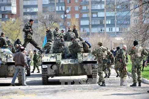 Trước đó, các binh sỹ Ukraine được điều tới thành phố Slavyansk đã giương cao cờ Nga, thể hiện họ đứng về phía những người ủng hộ liên bang hóa.