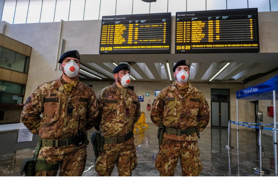 Các binh sĩ Italy được triển khai tới nhà ga trung tâm thành phố Palermo trên đảo Sicily. (Ảnh: EPA-EFE)
