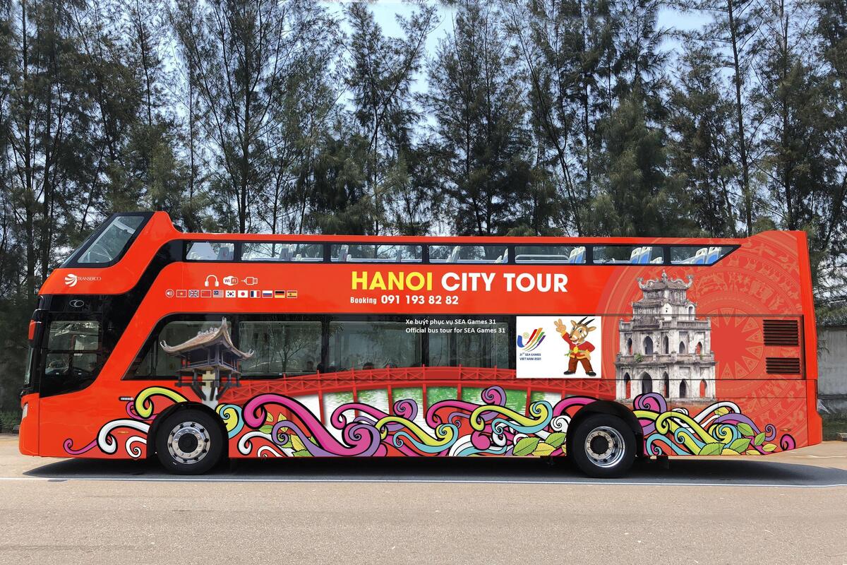 Hiện nay có 2 đơn vị cùng khai thác tuyến xe buýt du lịch 2 tầng, xe buýt miễn phí của ban tổ chức là xe màu đỏ “Hanoi City Tour”, có dán cờ biểu tượng logo SEA Games tại kính phía trước, có tên và logo Transerco và dòng chữ “Xe buýt phục vụ SEA Games 31” bằng Tiếng Việt và “Official bus tour for SEA Games 31” bằng Tiếng Anh bên thân xe.