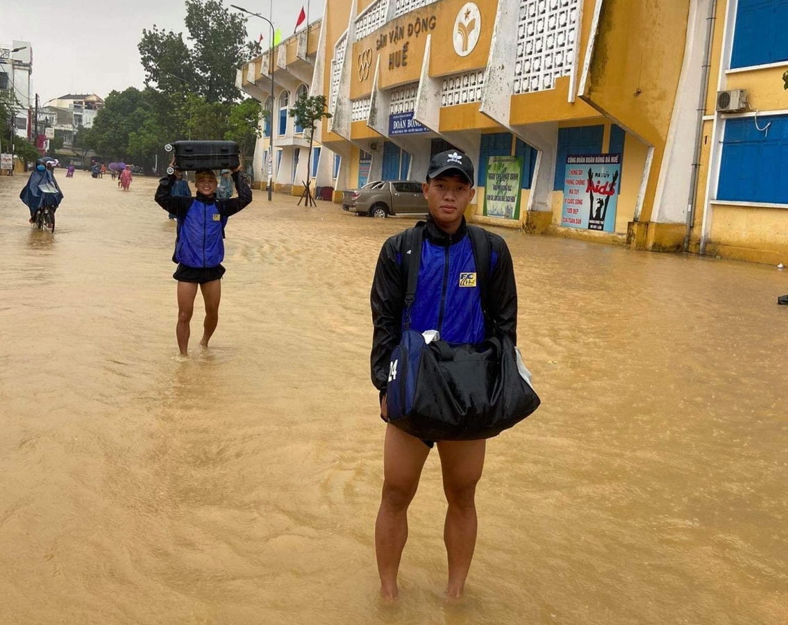 Mưa lũ liên tục tại miền Trung khiến CLB Huế gặp khó trong tập luyện và di chuyển.