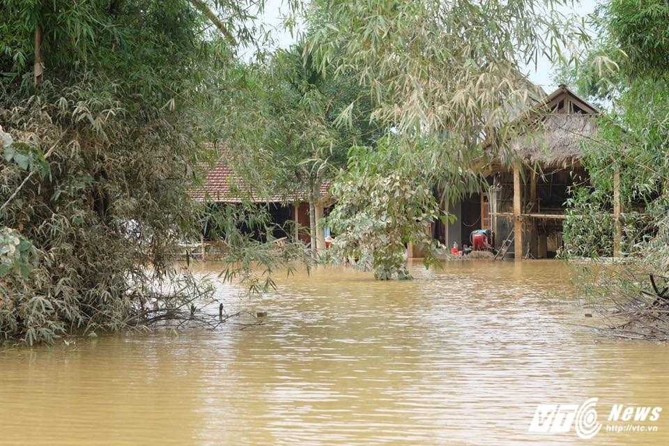 Trên đường đi, thỉnh thoảng lắm mới gặp bóng người lầm lũi lội nước lùa con trâu, con bò đi gửi được trên núi trước khi lũ tràn về. Còn lại, là sự vắng vẻ, tiêu điều, là xác gia súc, gia cầm trôi nổi và bốc mùi nồng nặc, là những cây keo ngập nước nghiêng ngả trong gió.
