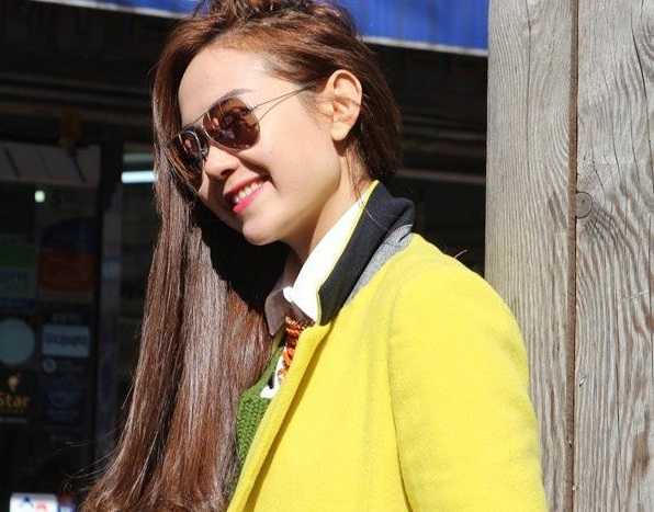 Diện áo khoác vàng, Minh Hằng cực kì nổi bật.