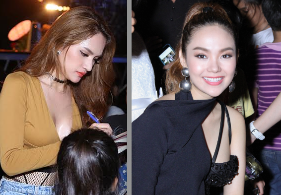 Minh Hằng diện một chiếc đầm hai dây với phần cúp ngực lỏng lẻo khi tham gia một sự kiện từ thiện, Hương Giang Idol khoe đường cong quyến rũ.