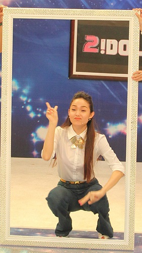 Đầu tiên cô chứng tỏ bản lĩnh siêu nhân của mình khi chỉ bằng một hơi mà kể được nội dung 3 câu chuyện Tấm Cám, Thúy Kiều, Romeo và Juliet trước sự ngạc nhiên của khán giả có mặt tại trường quay