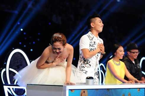 | Cặp đôi Minh Hằng - Phan Hiển thể hiện sự buồn bã vì bị thí sinh "phũ" khiến khán giả bật cười sảng khoái. |