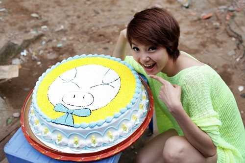 Một chiếc bánh kem to hình chú heo, cũng là biệt danh của Minh Hằng – Bé Heo đã được mang đến địa điểm quay khiến Minh Hằng không khỏi bất ngờ và hạnh phúc. Cùng một vài món ăn vặt đơn giản, buổi tiệc sinh nhật diễn ra trong một quán cóc, cũng là bối cảnh trong phim.
