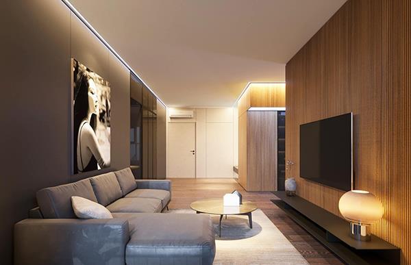 Căn hộ của Minh Hương được thiết kế theo phong cách đơn giản, hiện đại và tinh tế với gam màu nâu và xám làm chủ đạo. Cô tận dụng từng không gian trong nhà để lắp đặt những tủ để đồ thông minh, gọn gàng.