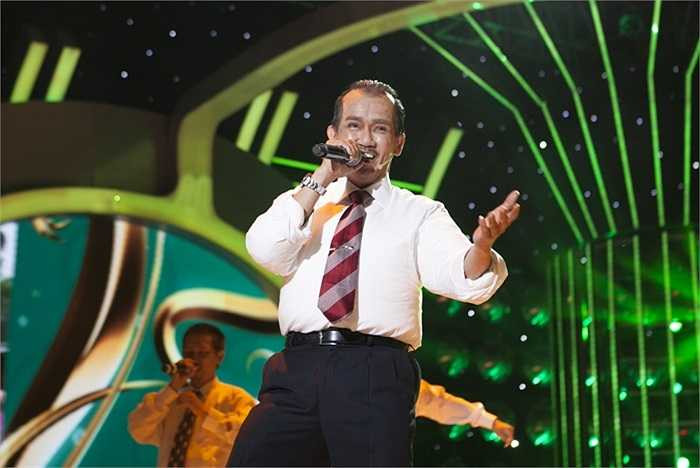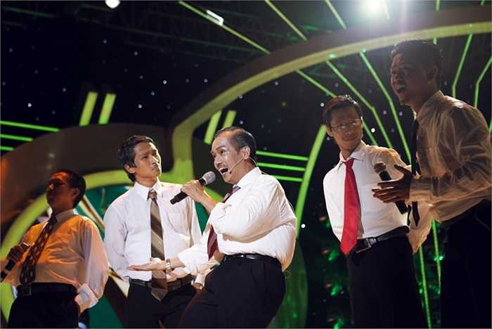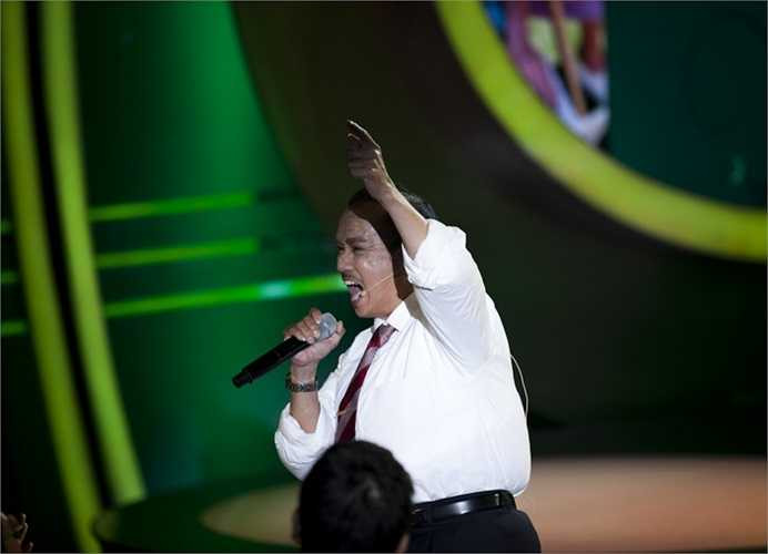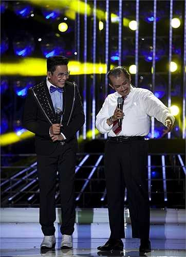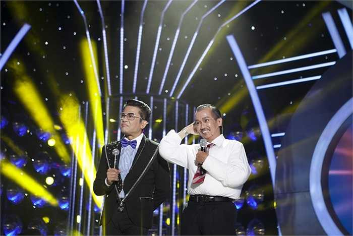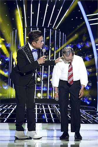 Giám khảo Thành Lộc hài hước trêu chọc: 'Chú vuốt cái gì mà có những hột trắng rơi rụng, đây quả thật là sự hóa trang rất sáng tạo. Sự hóa thân của Thuận rất nghiêm túc, kỹ thuật hóa thân hoàn hảo'.