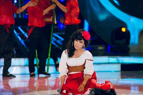 | Minh Thuận cho biết việc giả làm Cát Phượng trong phần trình diễn này đã khiến anh gặp rất nhiều đau đớn bởi liên tục bị 'Phan Đình Tùng' nhái dùng roi quất vào người. |