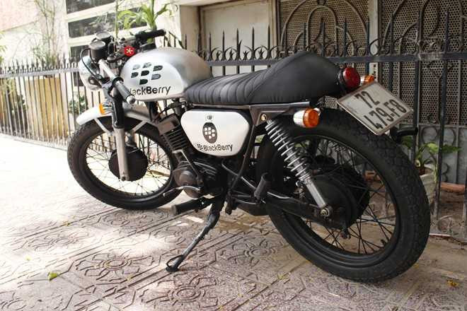 Chiếc xe Minsk mang bóng dáng BlackBerry được anh Rock Sai, một fan của trái Dâu Đen hoàn thành việc độ xe trong một chiều mưa ở Sài Gòn (Zing)
