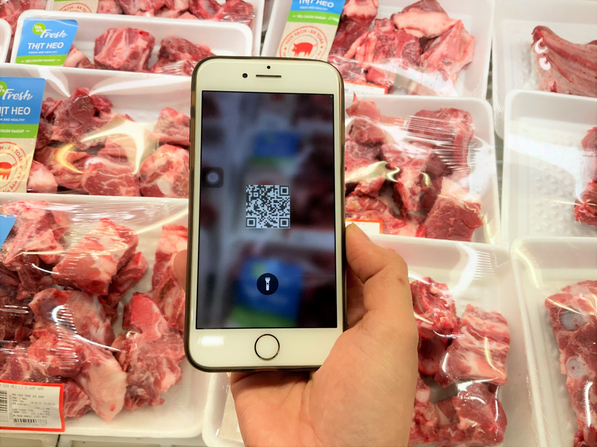 Khách hàng có thể dễ dàng truy xuất nguồn gốc cũng như các thông tin khác từ QR code với sản phẩm thịt heo sạch.