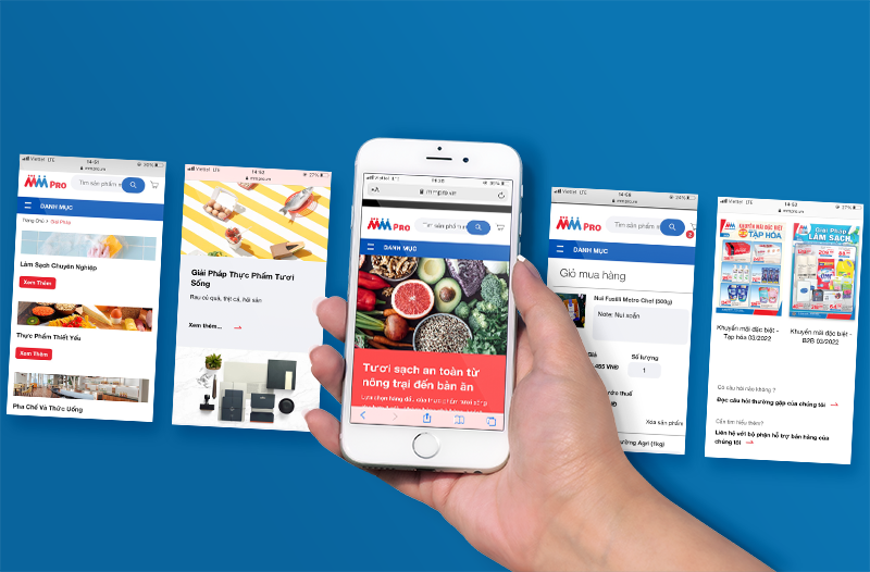 Sau khi đưa vào vận hành thành công kênh thương mại điện tử dành cho khách hàng cá nhân (B2C) là website MM Click & Get và kênh Zalo OA, MM chính thức giới thiệu website đặt hàng trực tuyến dành cho khối khách hàng chuyên nghiệp (B2B) là MM Pro. Đây được xem là website đầu tiên trên thị trường dành cho đối tượng khách hàng doanh nghiệp, có những tính năng vô cùng tiện lợi và cung cấp giải pháp chuyên biệt đến từng khách hàng.