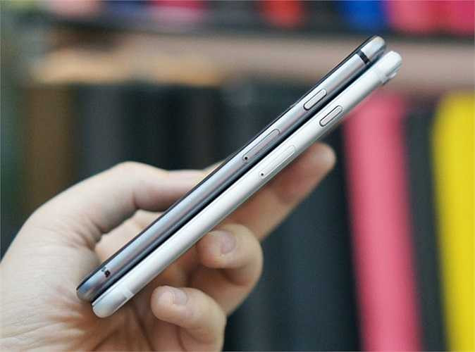 Mô hình iPhone 6 màu trắng đọ dáng với bản màu xám.