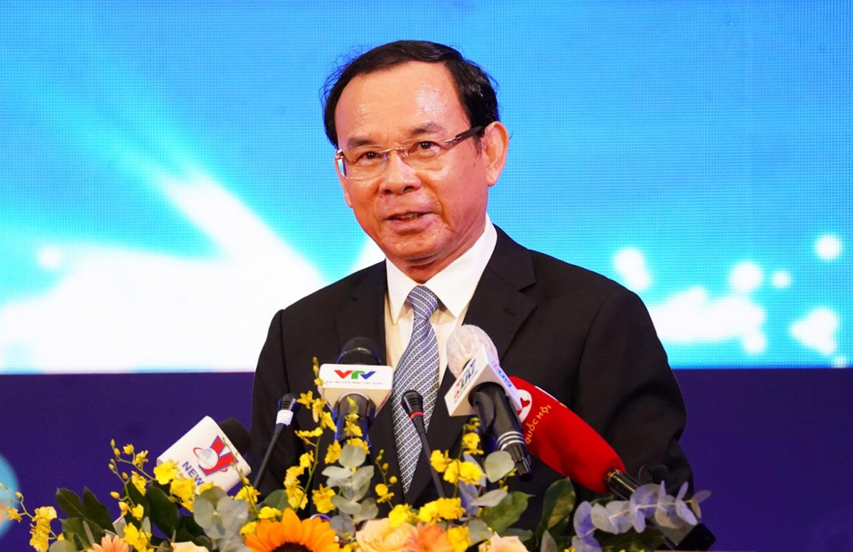 Bí thư Thành uỷ TP.HCM Nguyễn Văn Nên phát biểu tại diễn đàn. (Ảnh: Hoàng Thọ)