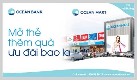 Đối với khách hàng lần đầu tiên mở Thẻ liên kết OceanBank – Ocean Mart: Miễn phí phát hành; Nhận ngay quà tặng hấp dẫn; Miễn phí phát hành, miễn phí thường niên năm đầu khi mở Thẻ Ghi nợ Quốc tế VISA OceanBank tại các chi nhánh/ phòng giao dịch OceanBank tại Hải Dương.
