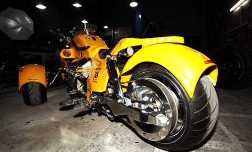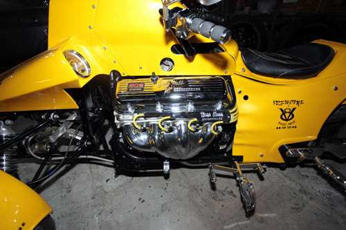 Xe có đến ba bánh nhưng phong cách của chiếc Trike này không phải là Can-am Spyder mà là theo xu hướng Hot Rod 4 bánh, do được tiết chế mất một bánh sau với việc thay bằng một bánh xe cực khủng. Chiếc Trike này sở hữu khối động cơ mạnh mẽ V8, công suất cực đại lên đến 750 mã lực nguyên bản của hãng Chevrolet.