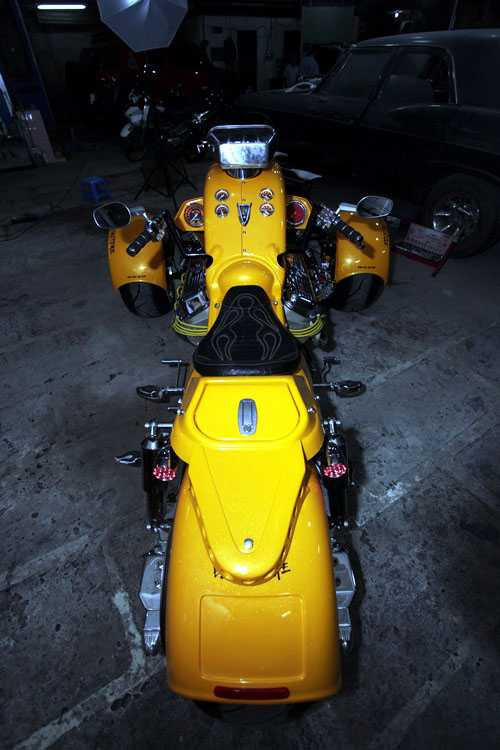 Sau hai tháng âm thầm thay đổi một số chi tiết cho phù hợp với vóc dáng của người Việt Nam, cuối cùng chiếc Boss Hoss Trike V8 cũng đã được trình làng trước ánh mắt săm soi của nhiều đại gia chơi siêu mô tô lẫn ô tô.
