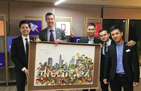 | Bức tranh có chữ ký và lời khuyên "Dream big dream" của Tổng thống Barack Obama tặng cho doanh nhân trẻ Trung Tín. Ảnh: CafeF. |