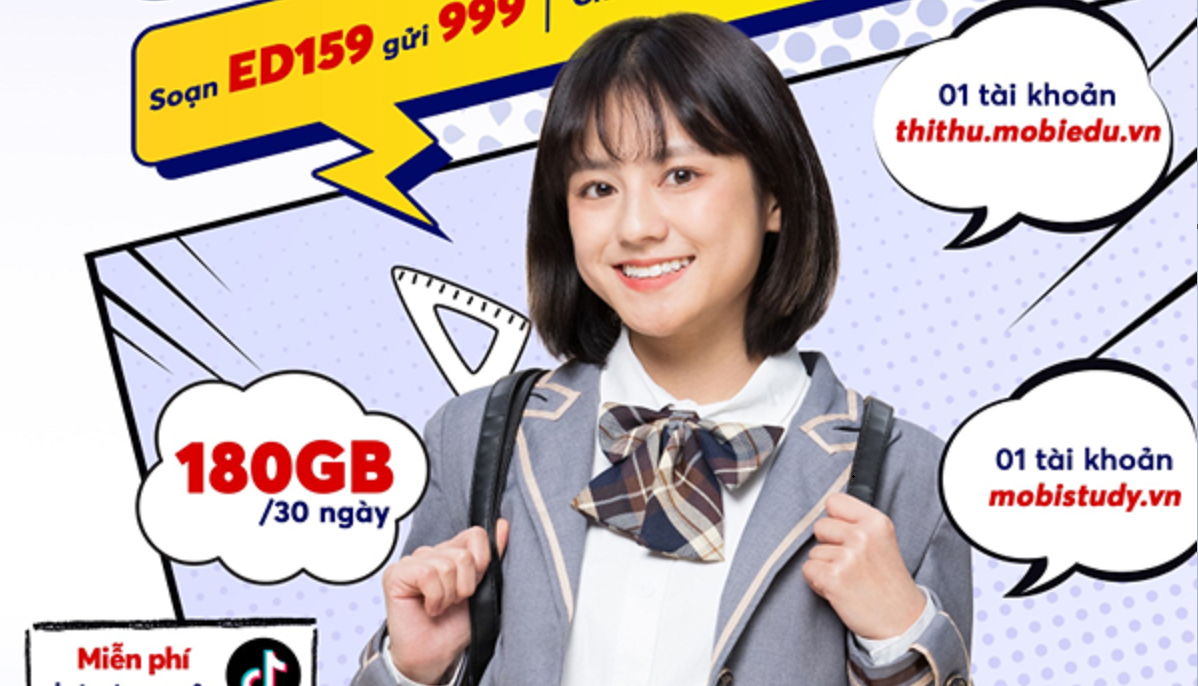 Gói cước ED159 hứa hẹn sẽ trở thành người ‘bạn thân’ của các em học sinh xuyên suốt cả năm học. Chỉ với 159.000 đồng/ tháng, các em học sinh đăng kí gói ED159 sẽ được sở hữu 01 tài khoản học tập không giới hạn trên trang mobistudy.vn, 01 tài khoản luyện thi trên trang thithu.mobiedu.vn, 180GB data sử dụng trong 30 ngày và còn được miễn phí data truy cập TikTok thả ga giải trí sau thời gian dài học tập, luyện thi online.