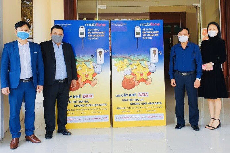MobiFone trao tặng tỉnh Hải Dương hệ thống đo thân nhiệt và sát khử khuẩn tự động phòng chống dịch.