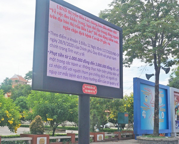 Màn hình LED tuyên truyền các nhiệm vụ chính trị của địa phương.