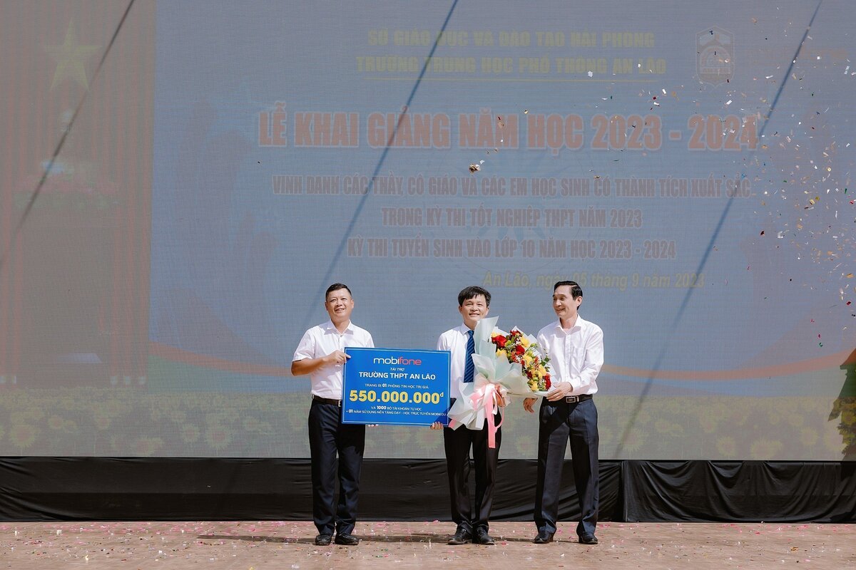 Sự kiện được tổ chức tại trường THPT An Lão, thành phố Hải Phòng. Tại đây, Sở Giáo dục và Đào tạo kết nối để MobiFone trao tặng một phòng máy tính chất lượng cao trị giá 550 triệu đồng để gửi tặng các em học sinh cùng thầy cô giáo nhà trường, phục vụ việc dạy và học trực tuyến.