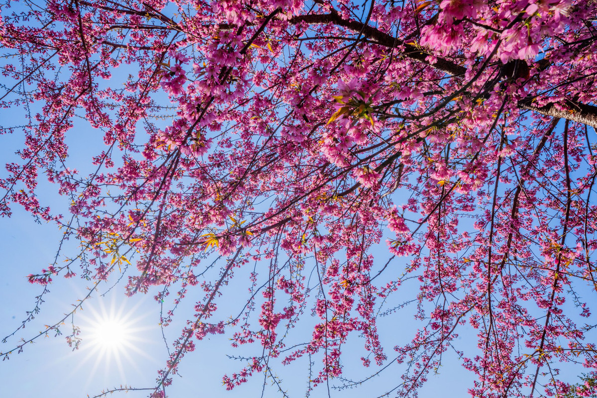 Những chùm hoa mai anh đào nở hồng rực rỡ dưới bầu trời xuân, tạo thành một điểm nhấn du lịch hấp dẫn cho vùng đất cao nguyên Mộc Châu.