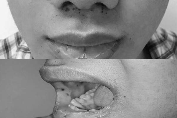 Các nốt tàn nhang quanh miệng và bên trong miệng bệnh nhân