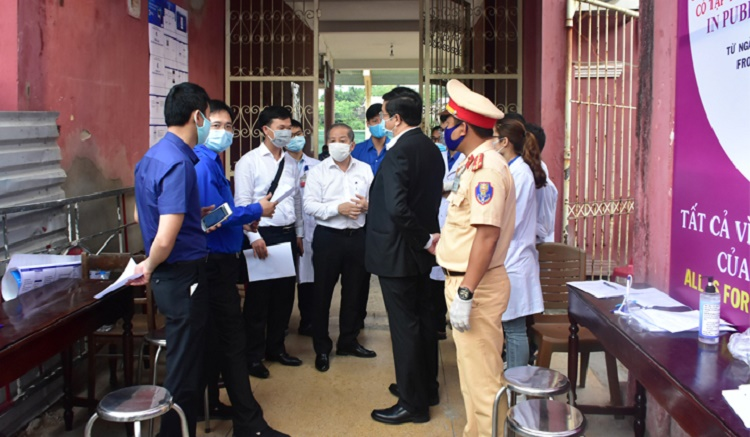 Ông Phan Ngọc Thọ - Chủ tịch UBND tỉnh Thừa Thiên - Huế kiểm tra chốt kiểm soát y tế Ga Huế. (Ảnh: Thuathienhue.gov.vn)