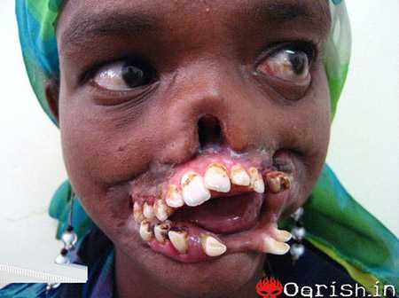 Trường hợp của cô bé người châu Phi này chỉ là một trong số những bệnh nhân của viêm miệng hoại tử do các tạp chí y học nước ngoài đăng tải. Do điều kiện y tế nghèo nàn và không được điều trị kịp thời và đúng cách nên toàn bộ môi và má của em đã bị phân hủy, để lộ ra lợi và hàm răng mọc lệch lạc, nghiêng ngả. Không chỉ vậy, toàn bộ chiếc mũi của em cũng đã bị vi khuẩn gặm nhấm, để lại một lỗ hổng lớn trên khuôn mặt.