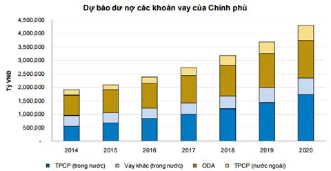 Nhu cầu vay nợ trực tiếp của Chính phủ sẽ gia tăng đều trong giai đoạn 2016-2020. Số liệu thống kê gần đây cho thấy, dư nợ trực tiếp của Chính phủ chiếm 48,2% và 49% GDP trong hai năm 2014 và 2015, tương đương với tổng dư nợ lần lượt là 1,9 và 2,1 triệu tỷ đồng.