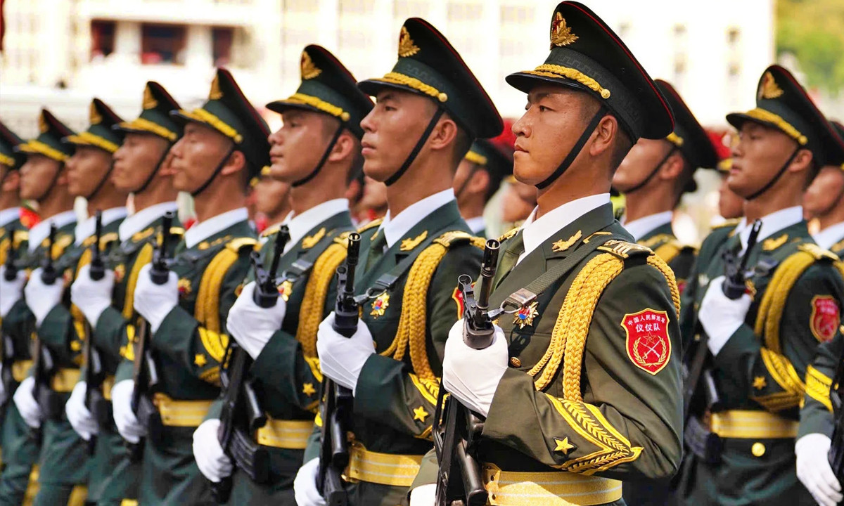 Khối quân nhân Quân giải phóng nhân dân Trung Quốc tham gia diễu binh tại Lễ kỷ niệm 50 năm Giải phóng miền Nam, thống nhất đất nước. (Ảnh: Lương Ý)