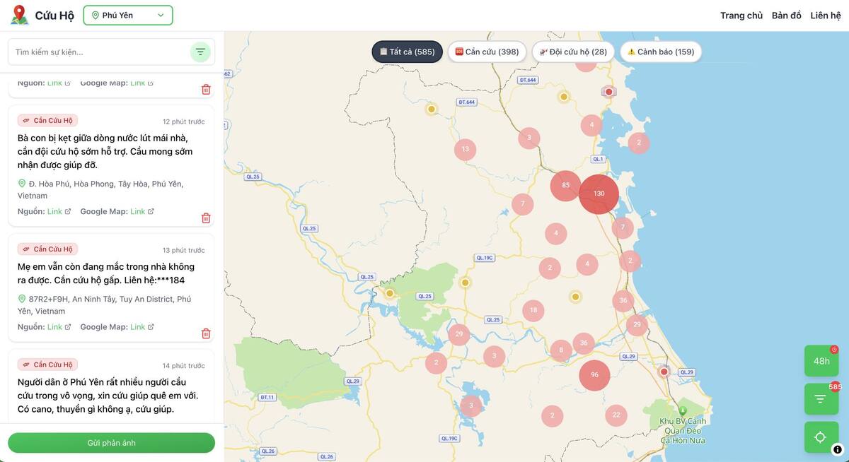 Nhờ dòng dữ liệu này, các đơn vị cứu hộ có thể nhanh chóng nhận diện khu vực cần ưu tiên - những nơi xuất hiện dày đặc lời kêu cứu - đồng thời phát hiện các vùng chưa có thông tin phản hồi để kịp thời kiểm tra.